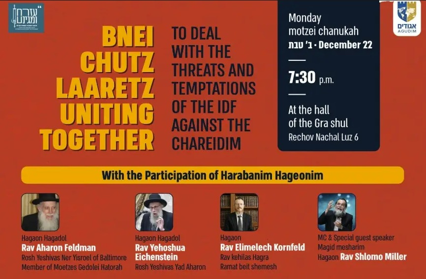 There is no doubt whatsoever that it will be full of nasty lies. Note how it declares that it’s about dealing with the “threats and temptations of the IDF against the chareidim.” It’s going to condemn the excellent IDF programs that have been set up by charedim and for charedim, such as Chashmonaim and Yeshivas Derech Chaim.