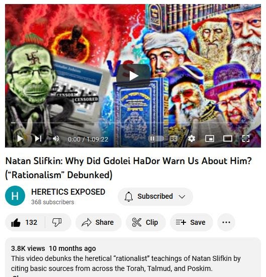 There are nearly three thousand people who subscribe by email, and many others who read this website in their browser. Some of them really, really hate what I write. There are all kinds of critical and sometimes hateful comments, which I generally allow to be posted because I feel that it is useful to know what people think. One person, with the endorsement of his rabbi, even produced an hour-long movie, complete with special effects, about the terrible heresy of this blog.