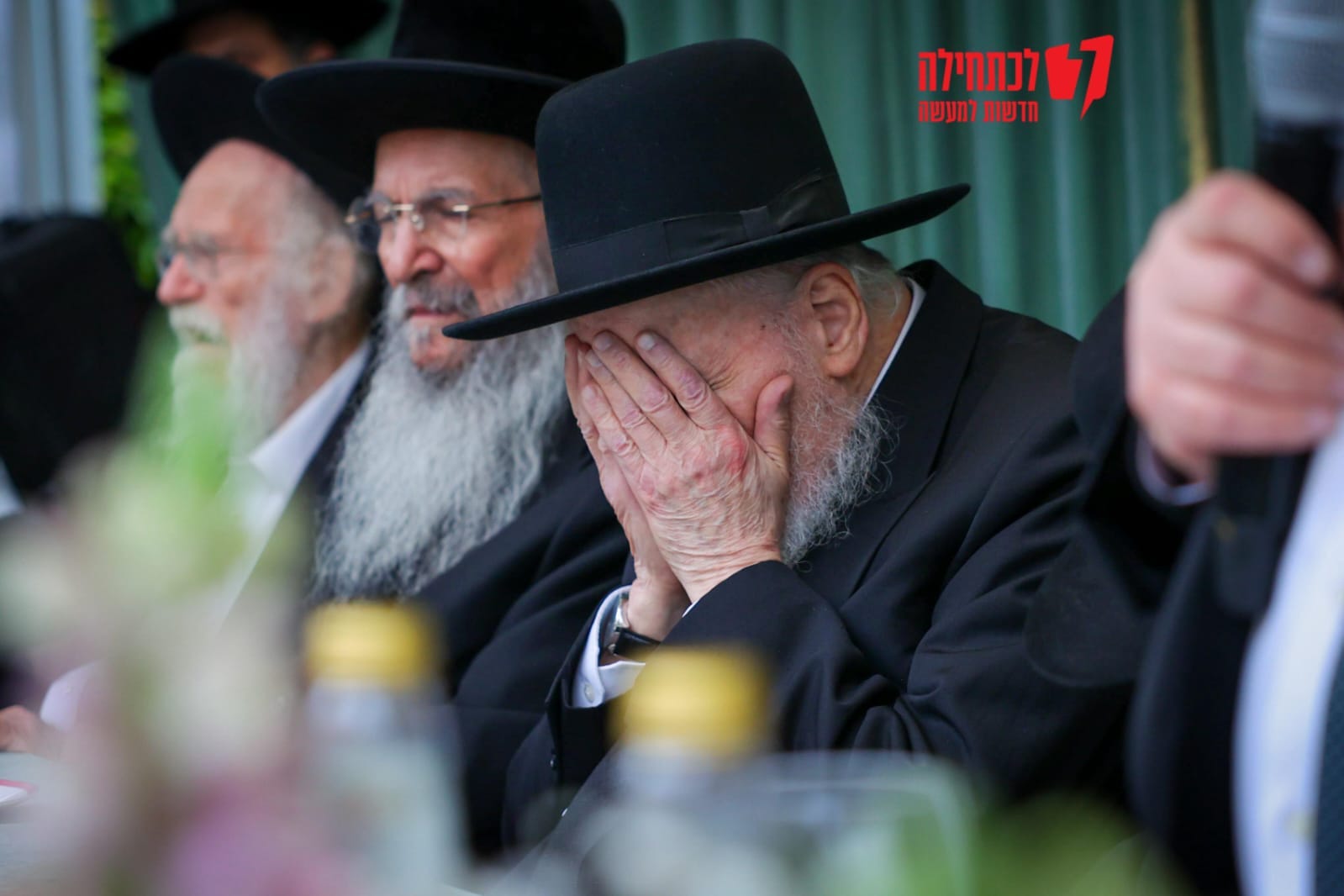 Why did I mention all that? Because as it happens, there was another crying rabbi in London when I was there yesterday, just a few blocks away from where I was staying. Rav Moshe Hillel Hirsch, “Gadol HaDor” of the charedi Litvish world, was visiting along with other charedi “Gedolim.” (For just two thousand pounds, you could join him for breakfast and receive a bracha.) A photo was shared of him crying during their presentation.