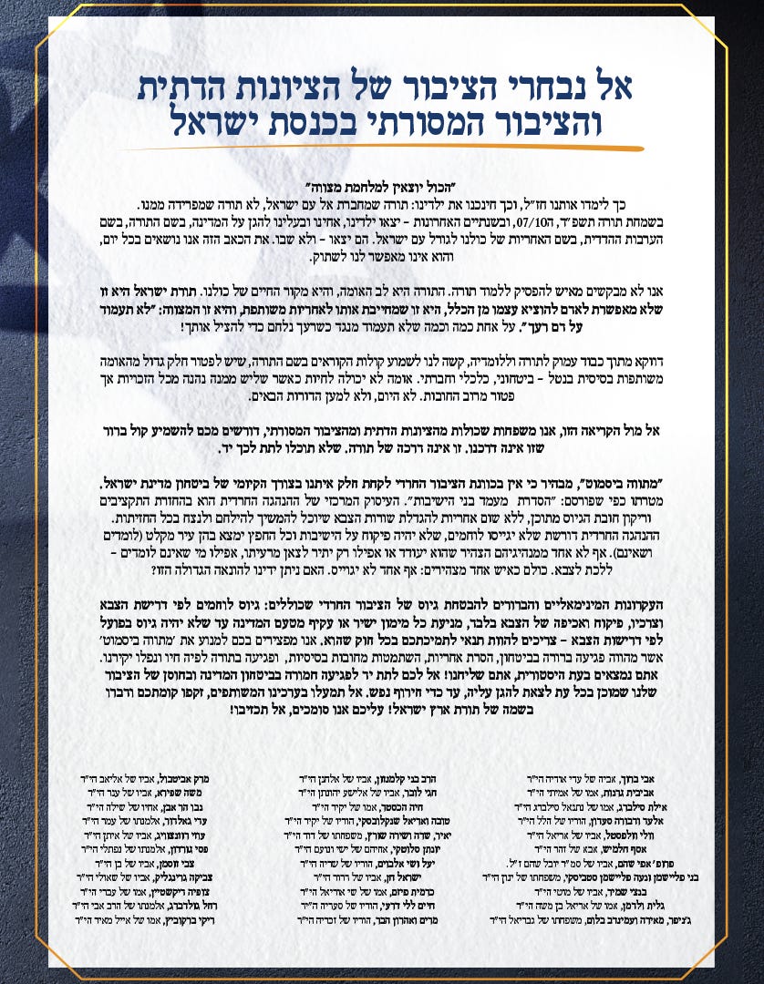 And so, if you agree that it’s important to relieve the crushing burden on non-charedi Israelis, and for Israel to have the miliary and economic strength that it needs to survive against all those who seek to destroy it, please help amplify this campaign! Pass these posts on to others, via email or WhatsApp or social media. The above letter from the bereaved families is particularly powerful to spread. Do it now!