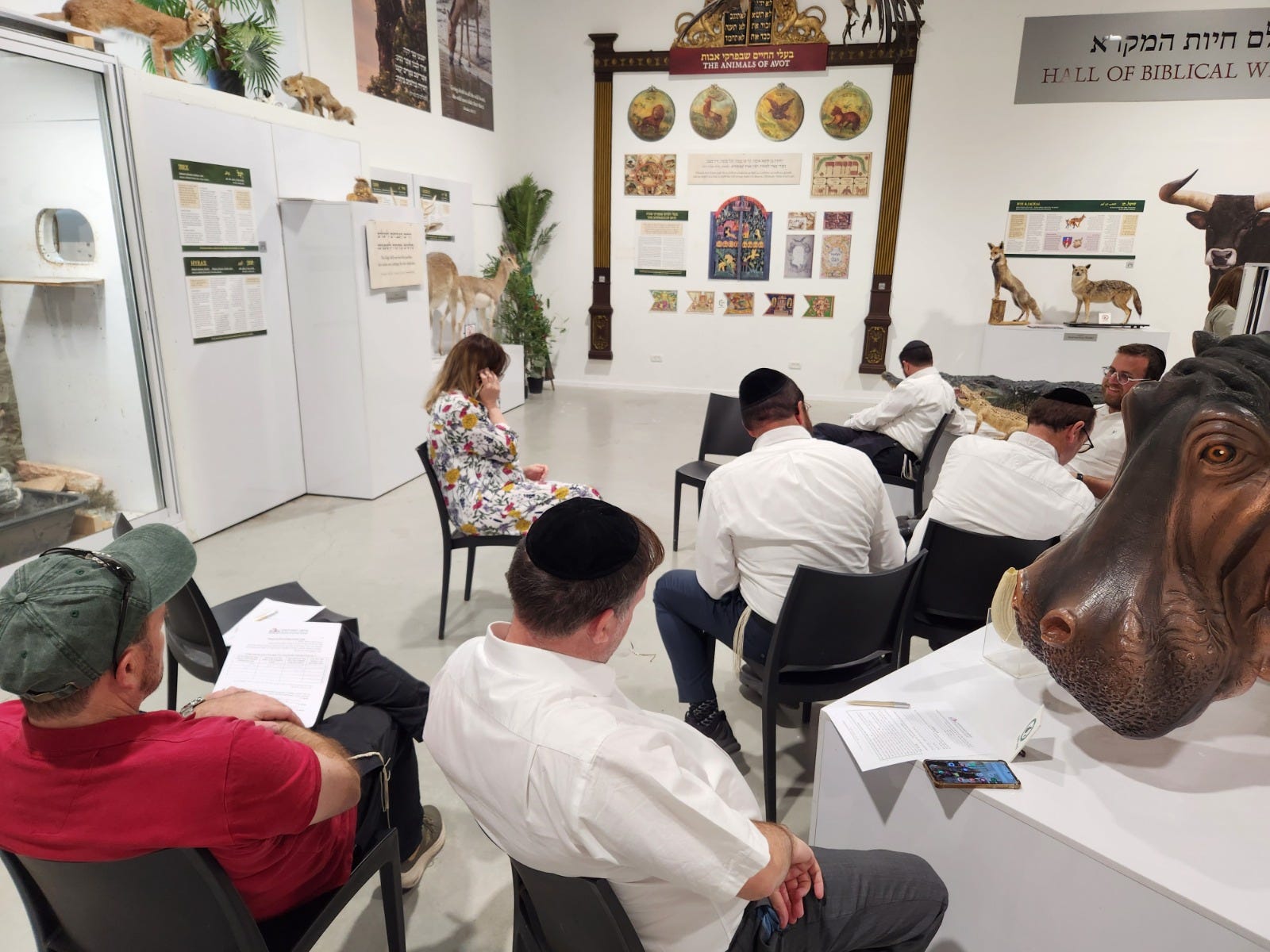 Then the other week we had a visit from Amutat Leshem. This is an Israeli nonprofit organization that works with approximately 30 yeshiva high schools, with the goal of expanding the number of yeshiva high schools that offer secular studies and to improve the quality of academic learning, so that every student graduates with a full matriculation certificate alongside their yeshiva learning. The economic benefits of this both to the students and to society is immeasurable. (And the percentage of graduates who enlist in the IDF is higher than among the general Charedi population.) The organization recently brought their team to the museum for a staff excursion day. But they ended up finding it so interesting and educational that they decided to encourage the schools they work with to bring their students!