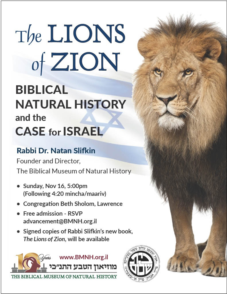 Meanwhile, Mamdani isn’t the only revolutionary getting a foothold in New York. I’m not interested in globalizing the Intifada, but I am interested in spreading word about how the animal world of the Torah demonstrates the Jewish People’s connection to the Land of Israel and refutes the anti-Israel academic crowd, as discussed in my new book The Lions Of Zion, along with presentations on other topics. I’m coming next week, spending next Shabbos in Philadelphia, and I’ll also be speaking in the Five Towns (see flyer below) along with Brooklyn and Monsey (details to come); we’re still looking for a venue to do a book launch in Teaneck, so please be in touch with Ellen, our head of advancement, if you have a shul for that: