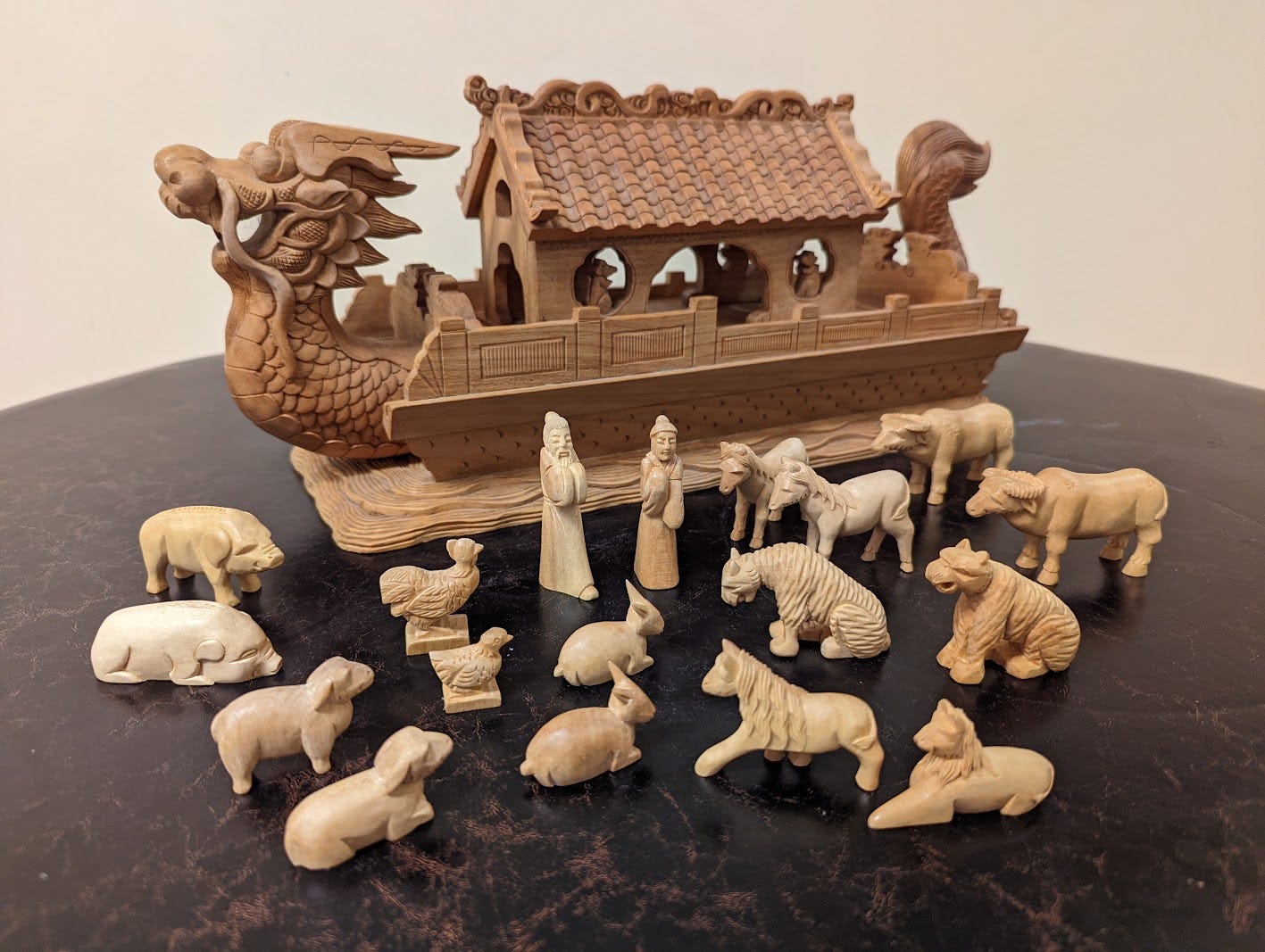 I then realized that many artistic models of Noah’s Ark from around the world (though not the one above) reflected the particular wildlife of the region where they were made. This tied in powerfully to our central message about how each and every nation has its own unique relationship to the animal kingdom, with that of the Jewish People being to the animals of the Land of Israel - even when we were dispersed around the world. Here’s an extraordinary Noah’s Ark that I was able to get from China (the fascinating story of how I did so is described here), which features no giraffes or lions, but does have tigers and Asian water buffalo: