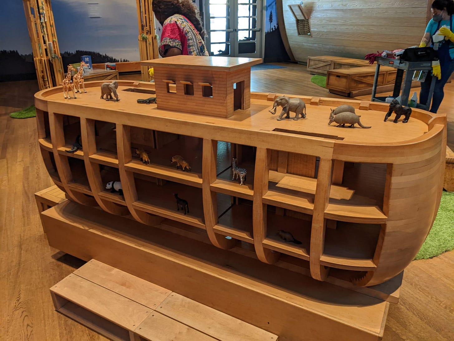 With the help of numerous friends around the world, I spent a few years putting together what I believe to be the greatest such collection ever amassed. We officially opened the exhibit, titled “The Art of the Ark,” two years ago. Along with two displays, “The Beauty of the Ark” and “Arks Around The World,” it also includes a scale model of the Biblical Ark (which we are replacing this week with a greatly improved version), and a Conservation Ark featuring endangered species along with showing how Noah’s Ark has been adopted as motif for conservation organization around the world. I’m giving a special presentation on the exhibit this Wednesday evening, for which you can book tickets at this link.