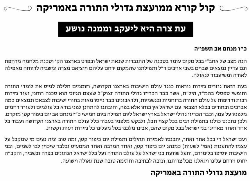 And it’s here: the official proclamation from The Council Of Great Torah Sages of Agudas Yisroel of America: