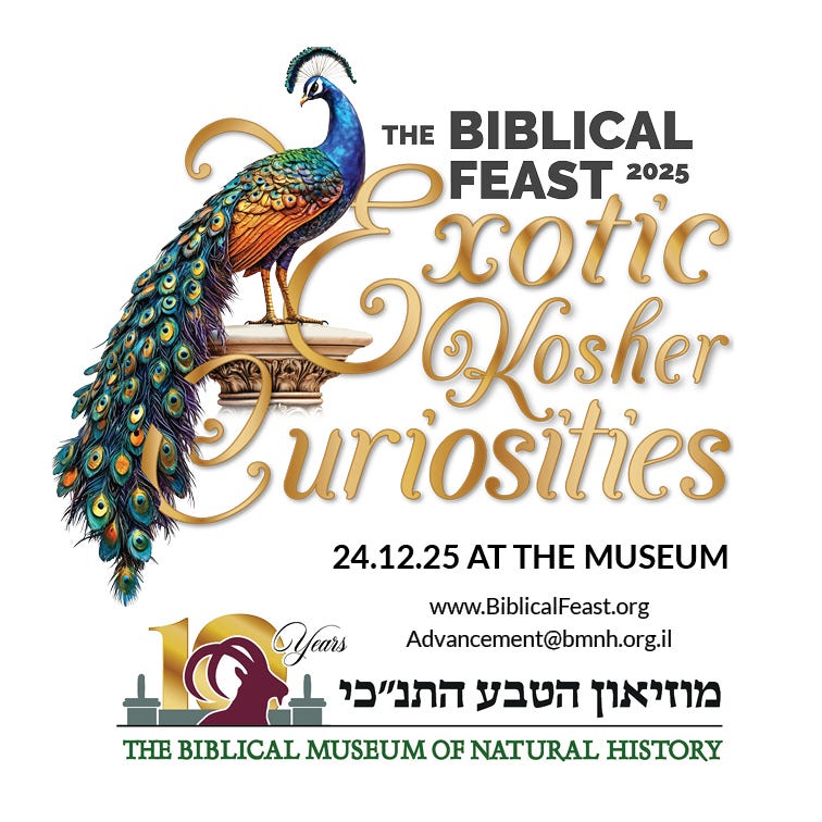 This year’s theme at The Biblical Museum of Natural History’s signature dinner is “A Feast of Exotic Kosher Curiosities.” It just so happened that when we decided upon a date that worked from both a tourism and logistical perspective, it ended up being December 24th, Christmas Eve. Accordingly, I wanted to put reindeer on the menu (similar to how the korban Pesach was a lamb), but alas this proved impossible.